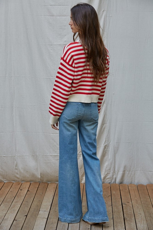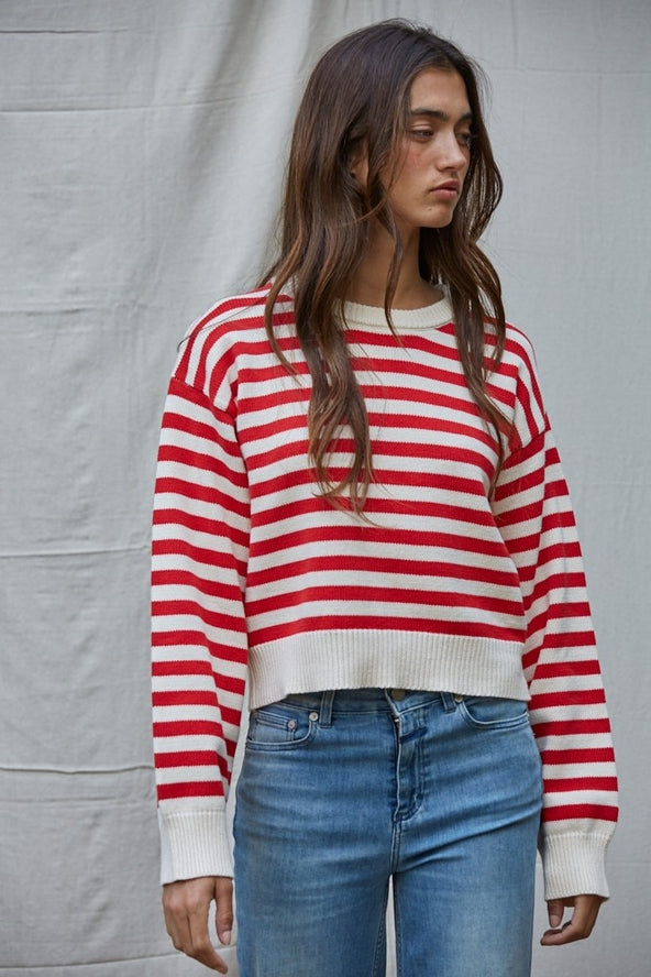Knit sweater nylon wool acrylic striped round neck long sleeve pullover top