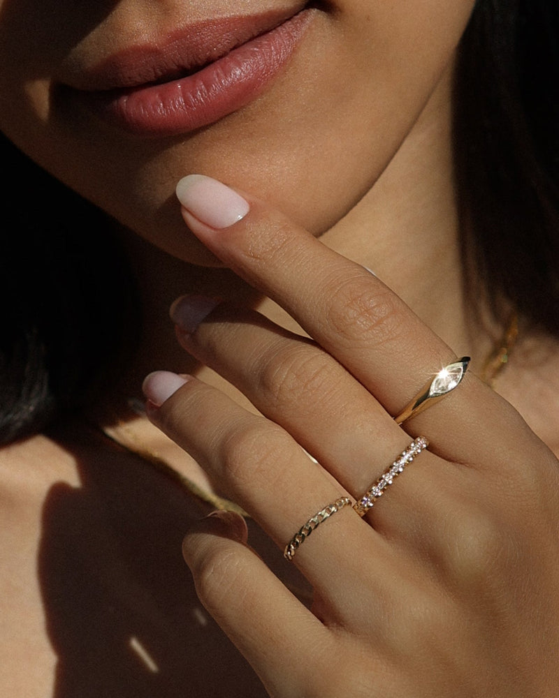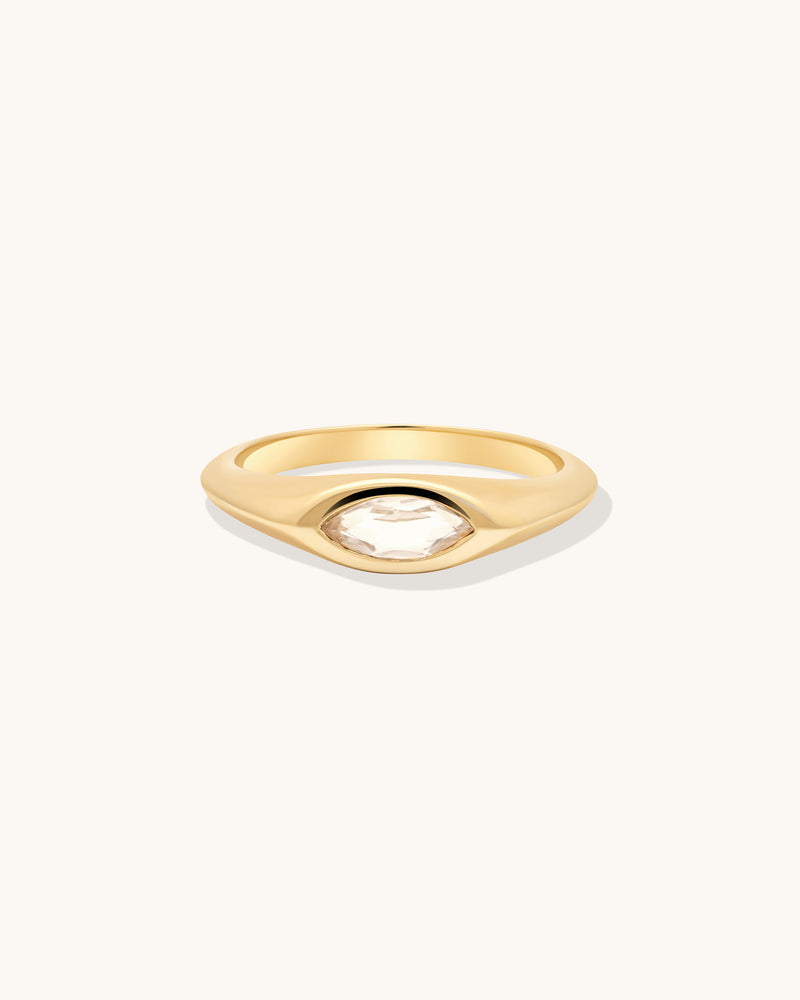 The Marquise Signet ring is a unique take on a classic design that has been around for centuries. This bold style has a marquise-shaped white topaz stone for maximum shine. It's giving diamond...without the price tag.
