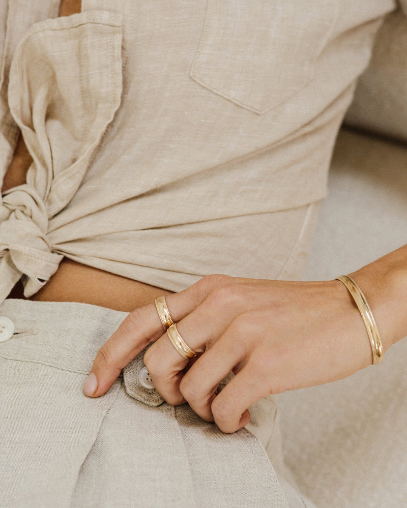 Evoking royalty, the Reign ring makes a statement while also serving as the perfect starting point to any stack. Beaded edging lends a touch of old world charm to this already classic ring. Can be gently adjusted to accommodate half sizes.
