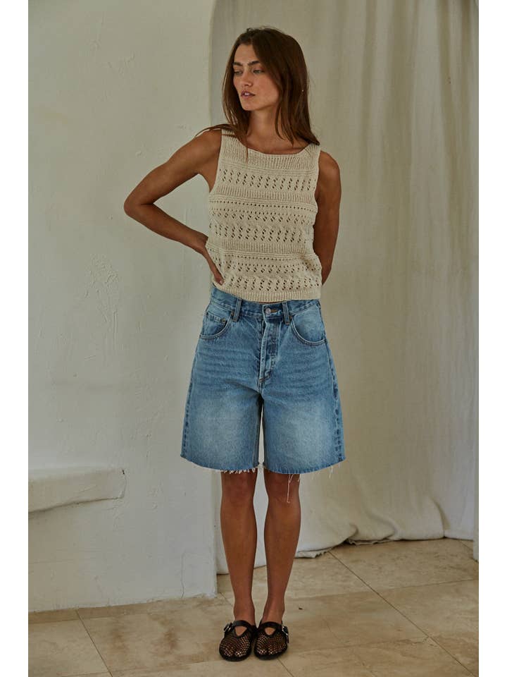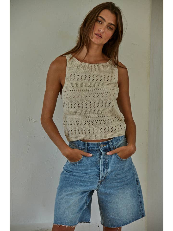 Knit sweater polyester see through boatneck sleeveless pullover top